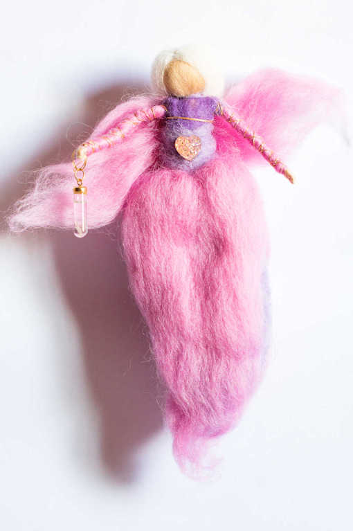 Debido a esa memoria ancestral, mi alma siempre ha estado en contacto y cerca de estos mágicos seres y por ello comencé a observarlos, a admirarlos y poco a poco entré en su mundo para intentar plasmarlos en las bonitas, delicadas y suaves lanas, diseñando preciosas figuras de hadas que son las que elaboro desde hace algunos años.