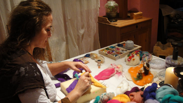 La actividad que desarrollo, se basa en el manipulado de lanas de oveja, algunas adquiridas en España y otras importadas de Alemania, donde este tipo de actividad está mucho más desarrollada y en expansión, utilizando la antigua técnica del "Afieltrado de lana con aguja" y la composición y creación de elementos con lana peinada.